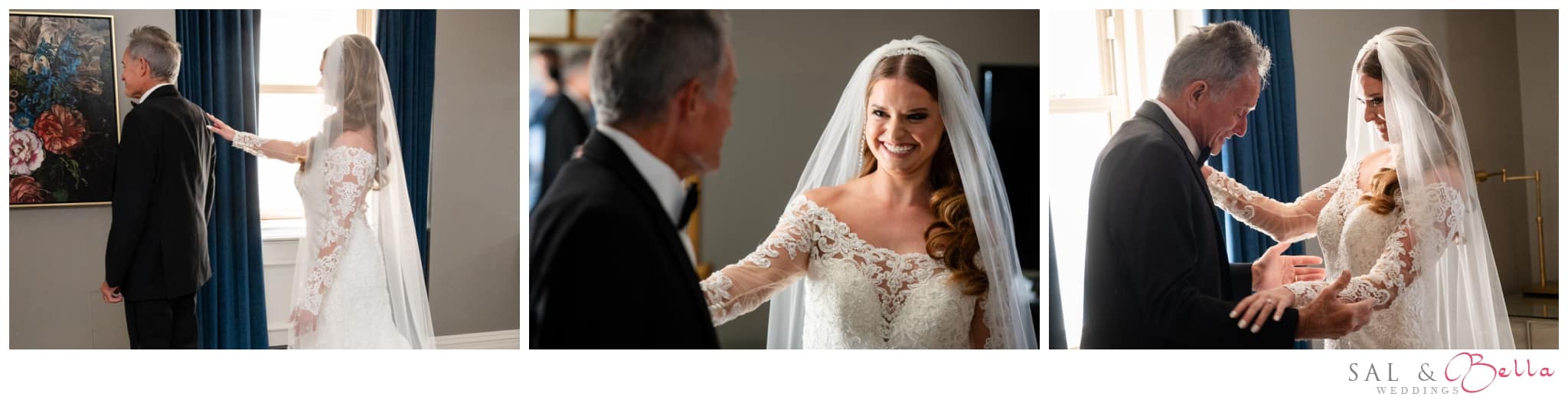 The bride chose to do a reveal with her dad.