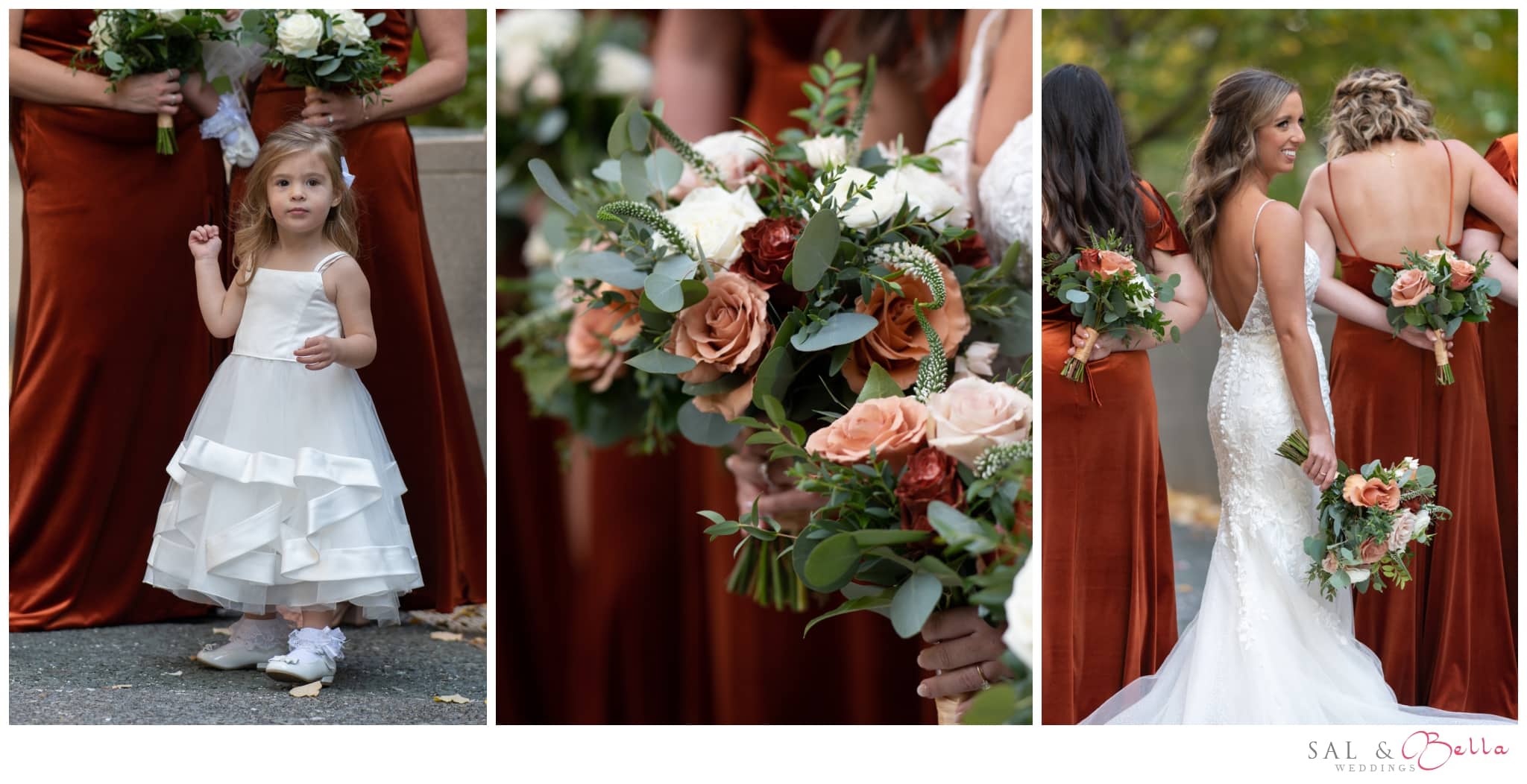 Marlee chose a warm copper palette for her autumn wedding, a sophisticated nod to the season that complemented the rich tones of the Duquesne Club beautifully.